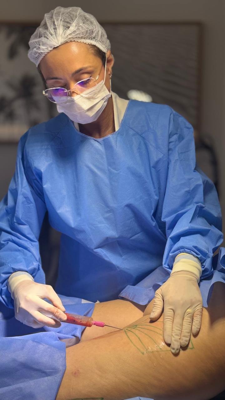O procedimento é feito na clínica, de forma minimamente invasiva, sem cortes, com anestesia local e, quando indicado, sedação leve com anestesista. A alta é no mesmo dia.