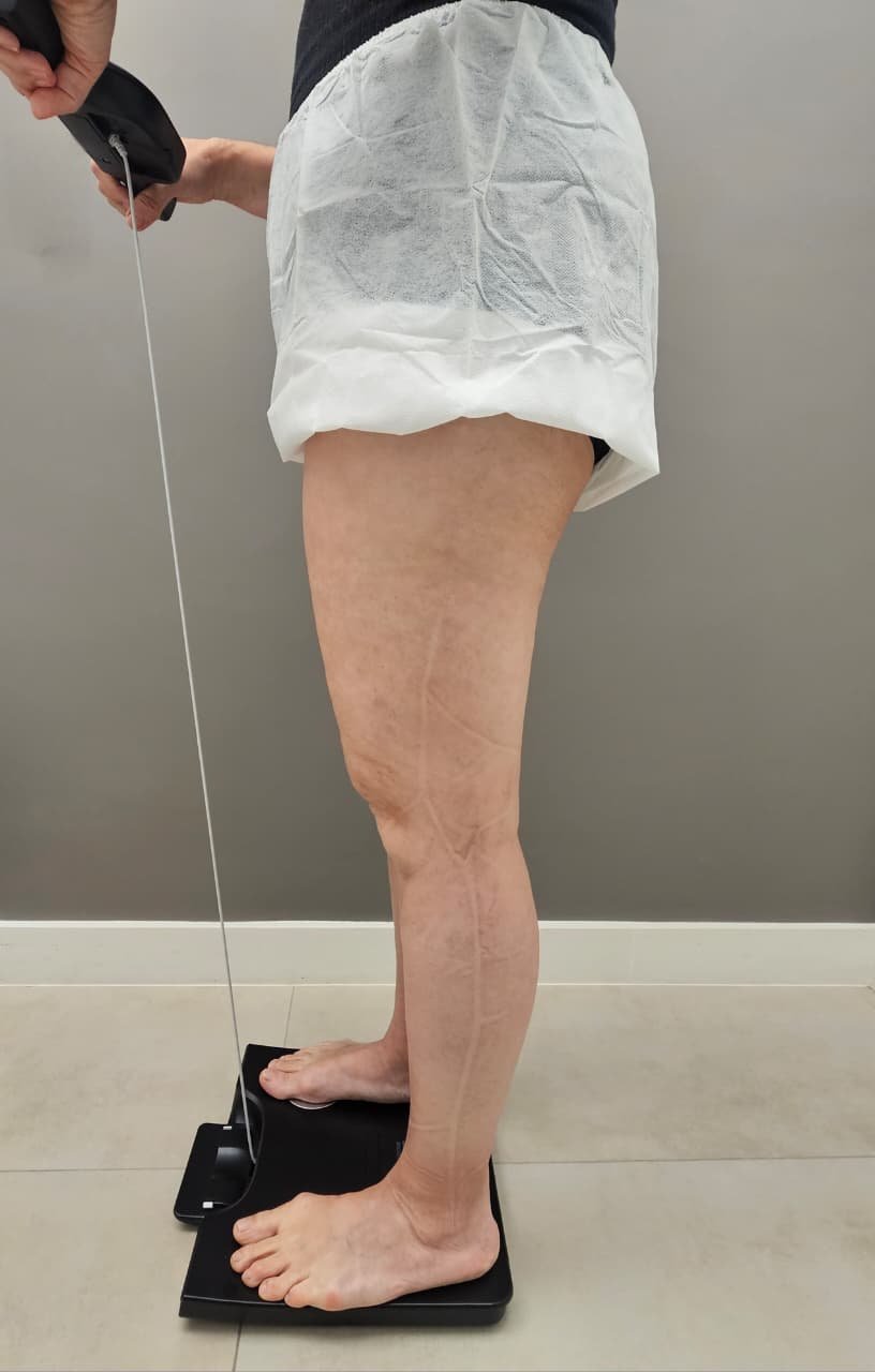 Nessa avaliação, realizamos ultrassonografia vascular com eco-Doppler, utilizamos realidade aumentada para mapear as veias superficiais e fazemos o mapeamento venoso detalhado.